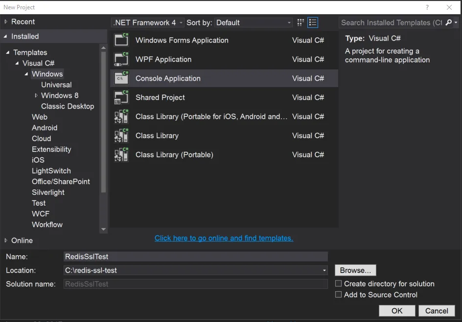 You will create a simple C# Console application. Go to Visual Studio and click on File -> New -> Project -> Console Application